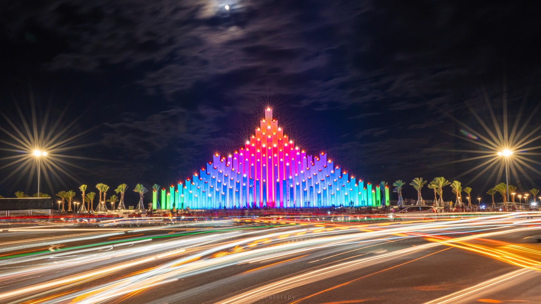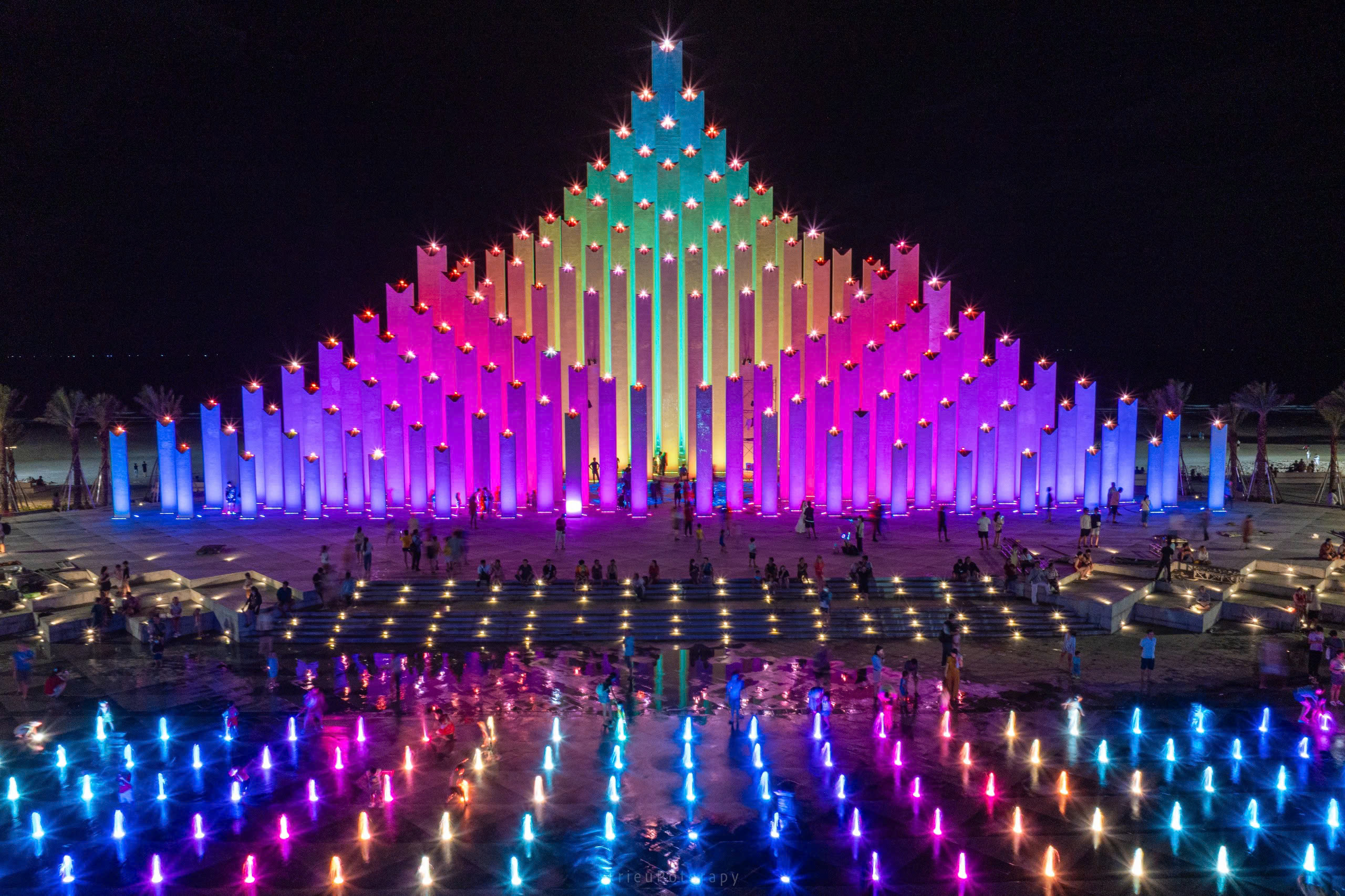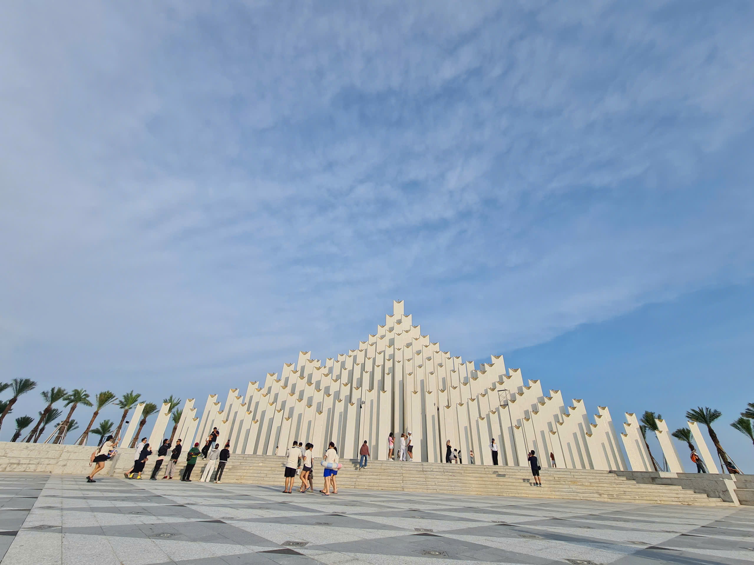 Tháp gồm 143 trụ, với chiều cao từ 4,55m đến hơn 34,25m, được sắp xếp theo cốt cao độ tăng dần hướng về phía biển.